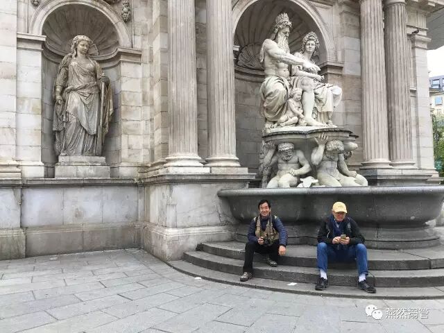 穿过城堡公园,青石甬道的两侧,绿绒般的草坪上,三五成群的鸽子在嬉戏;正对园门处,立有一尊莫扎特塑像,石基下摆放着鲜花,绿草鲜花中的石像神态安详,依然沉浸在他的乐谱中卓尔不群。